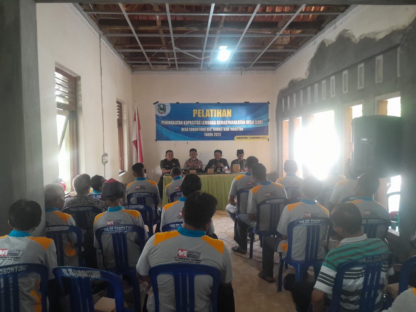 Selain itu dalam pelatihan ini juga dihadiri oleh Camat Karas, Koramil, Polsek, BPD, Dan Unsur Perangkat Desa Sobontoro. Pelatihan ini bertujuan untuk meningkatkan kualitas lembaga masyarakat desa sehingga dapat bekerja sesuai dengan tugas dan fungsinya.