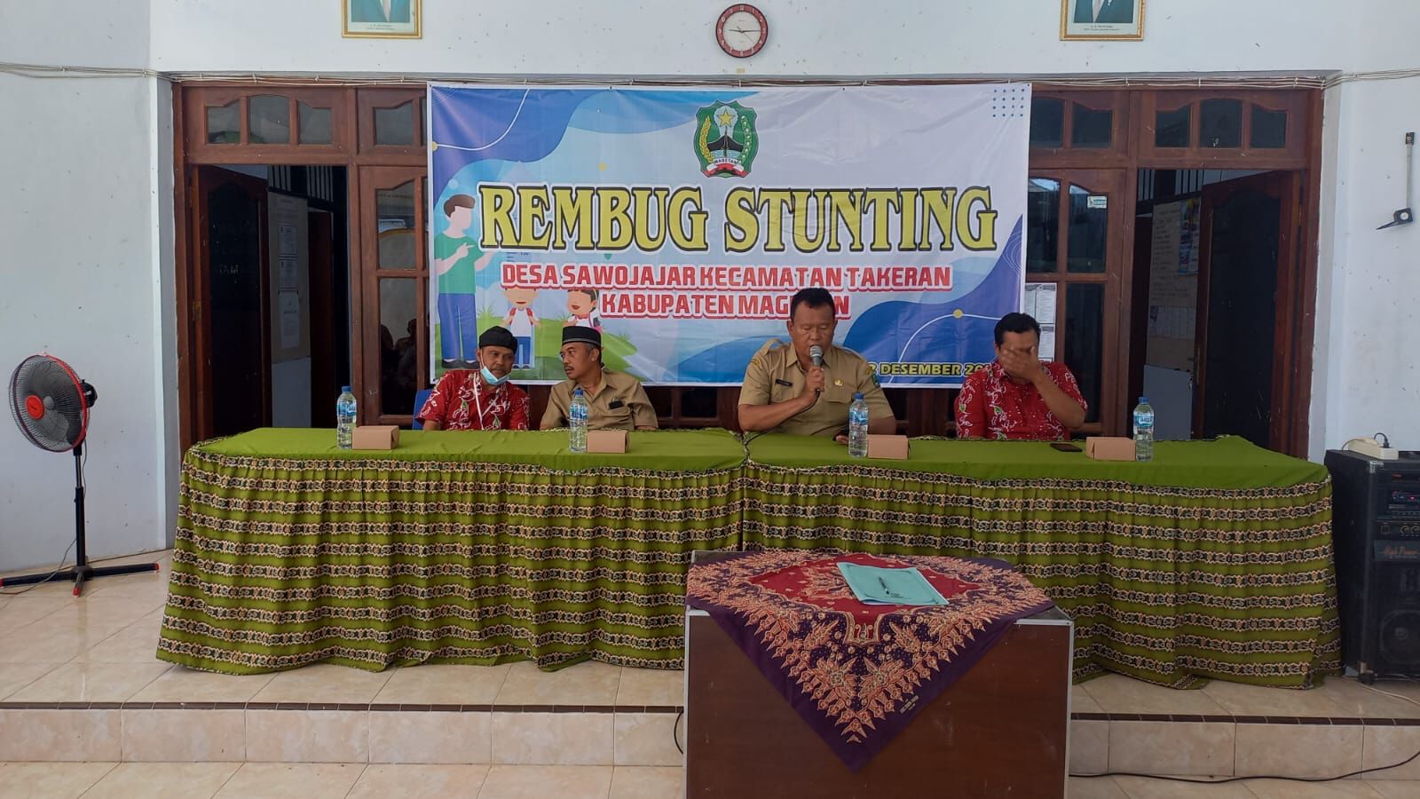 Magetan.– Dalam upaya mendukung penurunan angka Stunting, Babinsa Desa Sawo Jajar Serka Tarsius, Koramil 0804/11 Takeran jajaran Kodim 0804/Magetan menghadiri kegiatan Rembuk Stunting di Aula Balai Desa Sawo Jajar Kecamatan Takeran, kabupaten Magetan. Rabu (13/12/2023)
