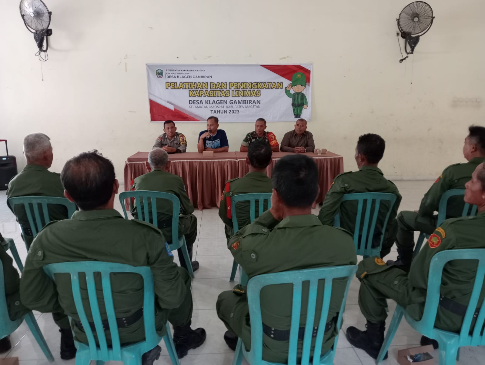 Magetan – Babinsa Desa Klagen Gambiran Pelda Supardi Koramil 06/Maospati Jajaran Kodim  0804/Magetan melaksanakan kegiatan Pelatihan dan peningkatan kapasitas Linmas Bertempat di Aula Desa Klagen Gambiran, kec Maospati, kab Magetan. Minggu ( 17/12/2023 ).   Kegiatan ini merupakan kegiatan rutin yang dilaksanakan guna meningkatkan kapasitas Sumber Daya Manusia (SDM) Linmas Desa Klagen Gambiran tahun 2023.Kegiatan Read More