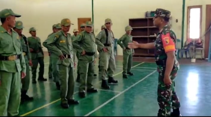Magetan. Babinsa Koramil 0804/08 Barat Serda Gutoyo bersama Bhabinkamtibmas bersinergi memberikan pelatihan dan pembinaan terhadap Linmas Desa Rejomulyo Kecamatan Barat Kabupaten Magetan. Senin (29/01/2024)