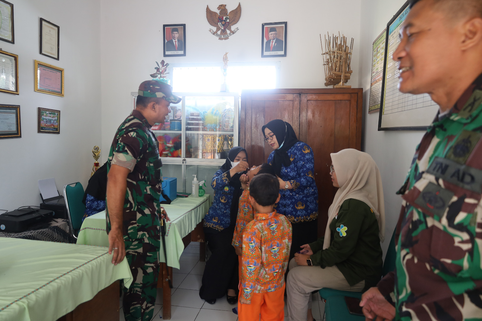 Magetan. – Dalam rangka mendukung suksesnya sub Pekan Imunisasi Nasional (PIN) Polio di Magetan, Dandim 0804/Magetan Letkol Inf Dani Indrajaya, S.I.P., memerintahkan seluruh Koramil jajarannya untuk memaksimalkan segala upaya guna mendukung program sub Pekan Imunisasi Nasional (PIN) Polio di Magetan, dengan mengerahkan seluruh Babinsa untuk menyisir warga yang belum mengikutsertakan balita dan anak dalam program imunisasi.