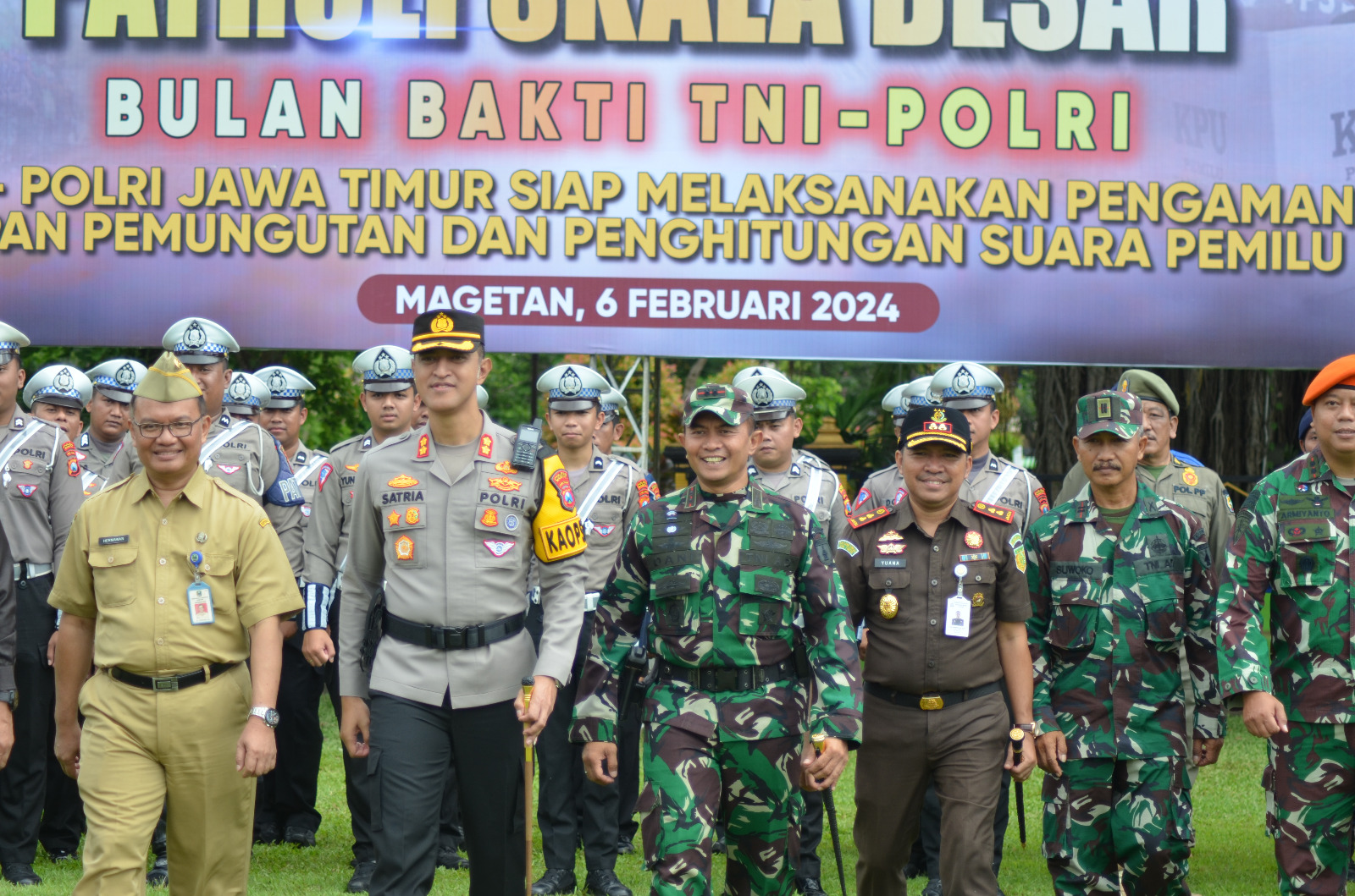Magetan.kodim-magetan.com – Dalam rangka memastikan kesiapan pasukan dalam rangka pengamanan Pemilu 2024, Dandim 0804/Magetan Letkol Inf Dani Indrajaya, S.I.P., bersama jajaran Forkopimda Magetan menghadiri Apel Gelar Pasukan di Alun- alun Kabupaten Magetan. Selasa (6/2/2024)