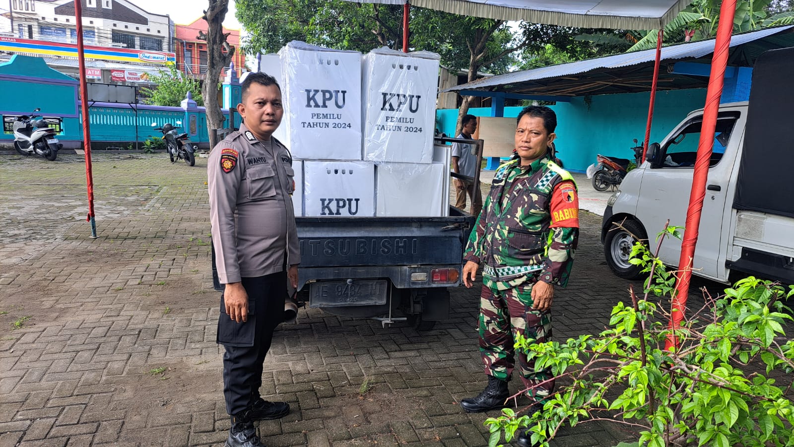 Magetan. – TNI – POLRI berkomitmen untuk mengawal setiap tahapan Pemilu 2024 di wilayah Kabupaten Magetan Seperti yang dilakukan oleh anggota Babinsa Koramil 0804/06 Maospati jajaran Kodim 0804/Magetan bersama Bhabinkamtibmas melaksanakan pengamanan dan pengawalan kotak suara dari TPS ke kantor PPK di wilayah Kecamatan Maospati,Kamis ( 15/2/2024 ).