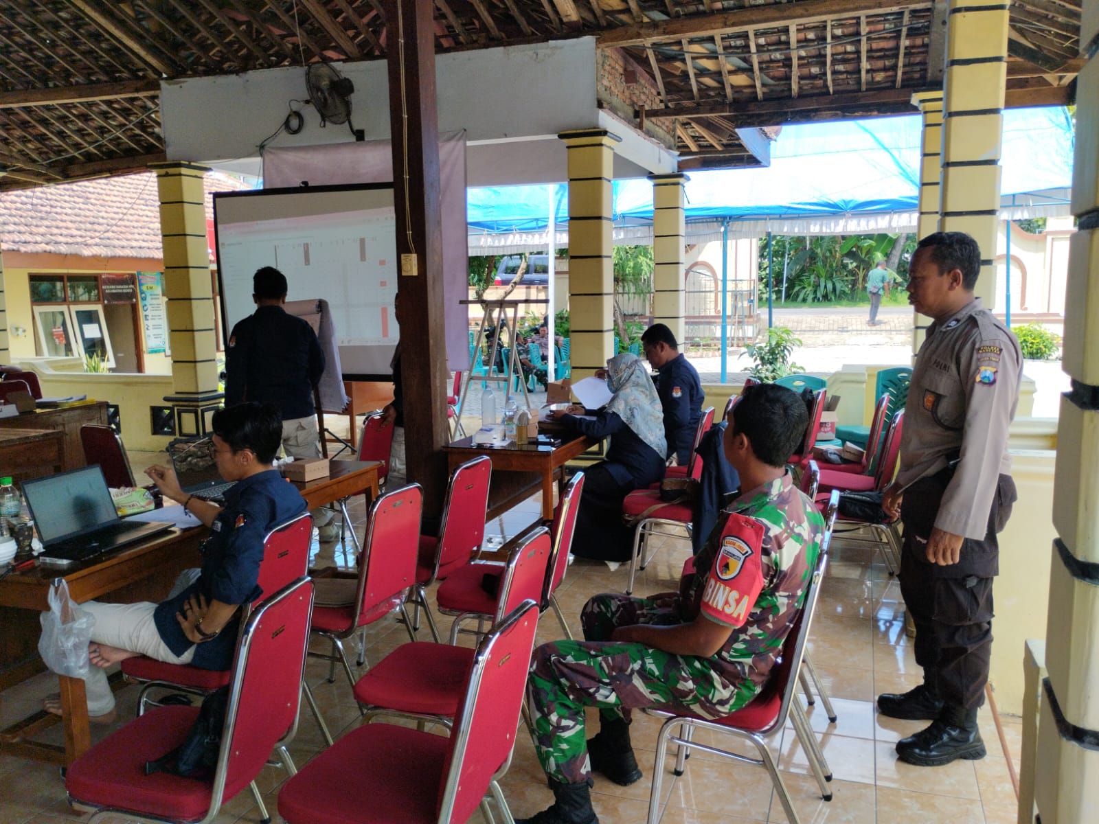 Magetan. – Rapat Pleno Terbuka rekapitulasi hasil penghitungan perolehan suara Pemilu 2024 tingkat Kecamatan masih berlangsung. Guna mengantisipasi munculnya masalah terhadap perhitungan suara di PPK, Personel Koramil 0804/13 Bendo bersama Polsek Bendo melaksanakan pengamanan rapat pleno rekapitulasi hasil penghitungan perolehan suara Pemilu 2024 tersebar di Kecamatan, Kabupaten Magetan. Rabu (21-02-2024).