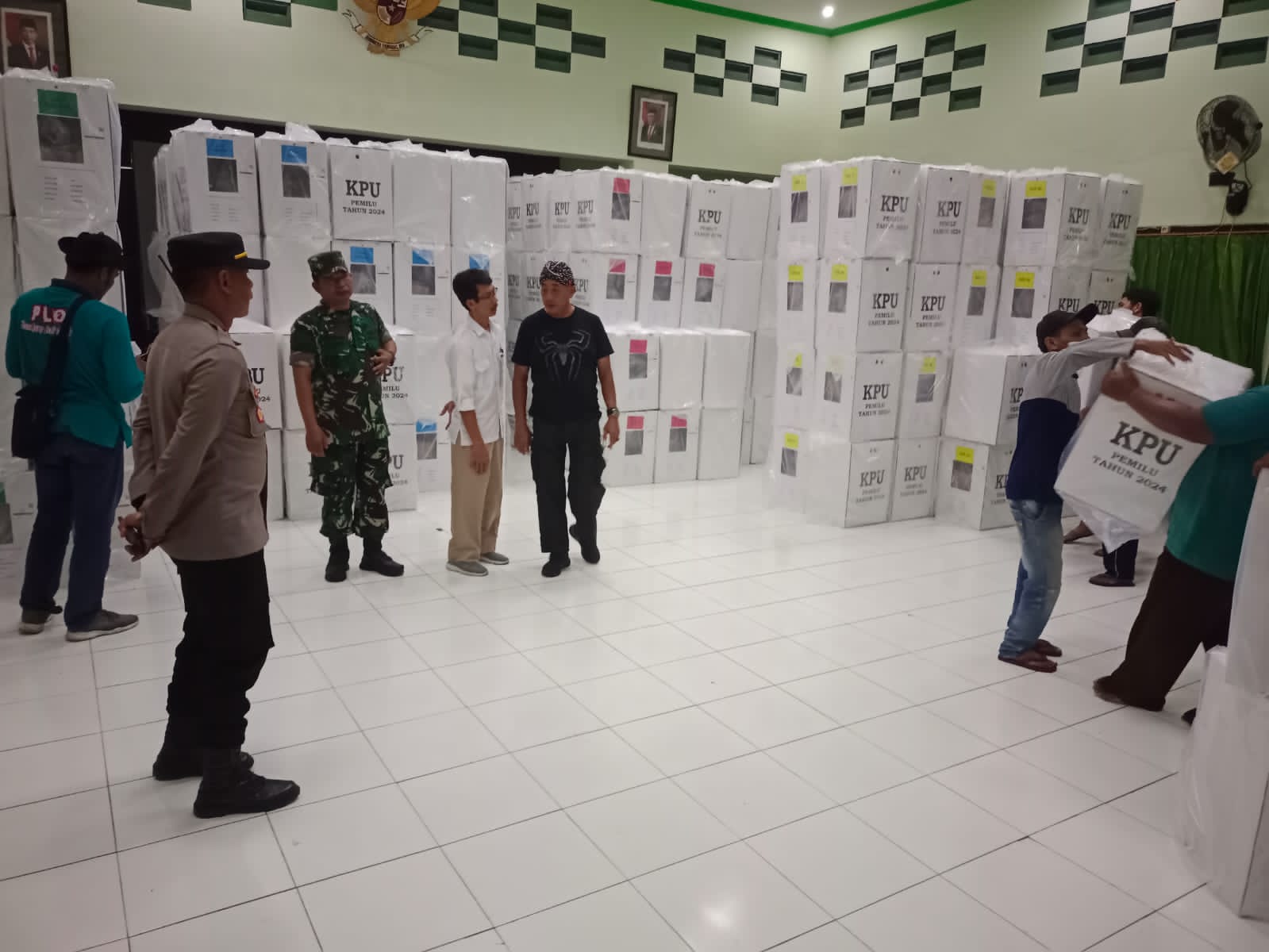 Magetan.kodim-magetan.com – Komandan Koramil Tipe B 0804/01 Magetan jajaran Kodim 0804/Magetan Kapten Arm Khoirudin bersama Forkopimca Magetan menghadiri kegiatan penerimaan logistik Kotak suara dari gudang KPUD Magetan dengan jumlah 630 kotak suara bertempat di gedung Gusti lider kantor kecamatan Magetan, Kab Magetan. Senin(12-2-2024)