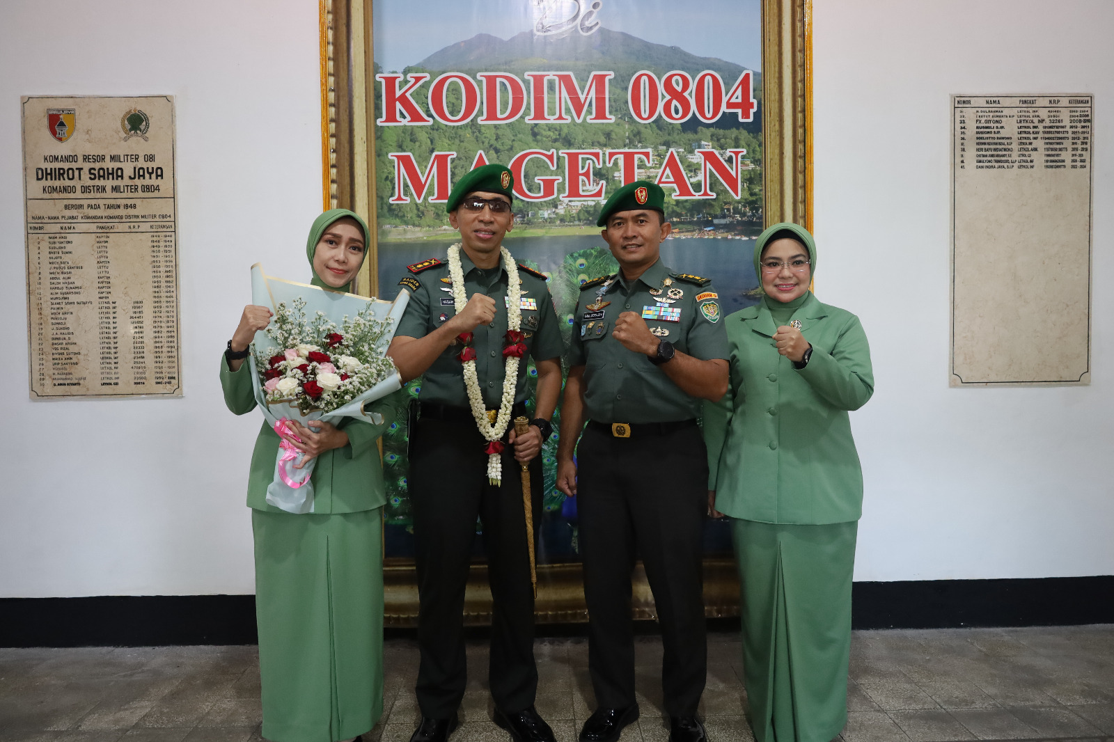 Magetan. Suasana haru mengiringi tradisi pelepasan Dandim 0804/Magetan lama Letkol Inf Dani Indrajaya, S.I.P., dan penyambutan Dandim 0804/Magetan baru Letkol Inf Hasan Dasuki, S.Sos., pada hari Sabtu, 24 Februari 2024. Acara yang berlangsung di Makodim 0804/Magetan tersebut dihadiri oleh seluruh anggota Kodim 0804/Magetan, PNS dan Persit Kartika Chandra Kirana Cabang XVIII Kodim 0804.