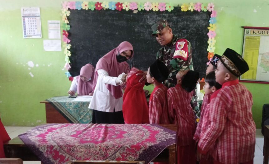 Magetan. – Serma Doni S. Anggota Koramil 11/Takeran jajaran Kodim 0804/Magetan selaku Babinsa Desa Tawang Rejo melaksanakan pendampingan pemberian Sub PIN Polio oleh Petugas Puskesmas Takeran bertempat Di SDN Tawang Tejo Kecamatan Takeran Kabupaten Magetan. Rabu (21-02-2024).