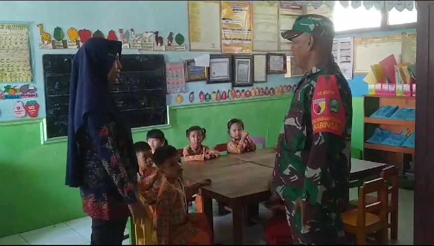 Magetan. – Babinsa Koramil 0804 / 08 Barat Magetan, Serma Syarif merasa gembira bisa dekat dengan anak – anak murid TK, hal tersebut di lakukan saat melaksanakan komunikasi Sosial (Komsos) dengan Guru TK di desa Jajar Kecamatan Kartoharjo, Kabupaten Magetan. Jumat (22-03-2024)