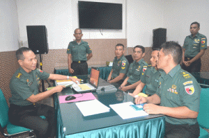 Tim Post Audit Itdam V/Barwijaya yang dipimpin oleh Letkol cba afid Handoko, S.Sos., M.Si., bersama empat orang pengawas lainnya melakukan post Audit Was internal triwulan pertama tahun anggaran 2024 Kodim 0804/Magetan.
