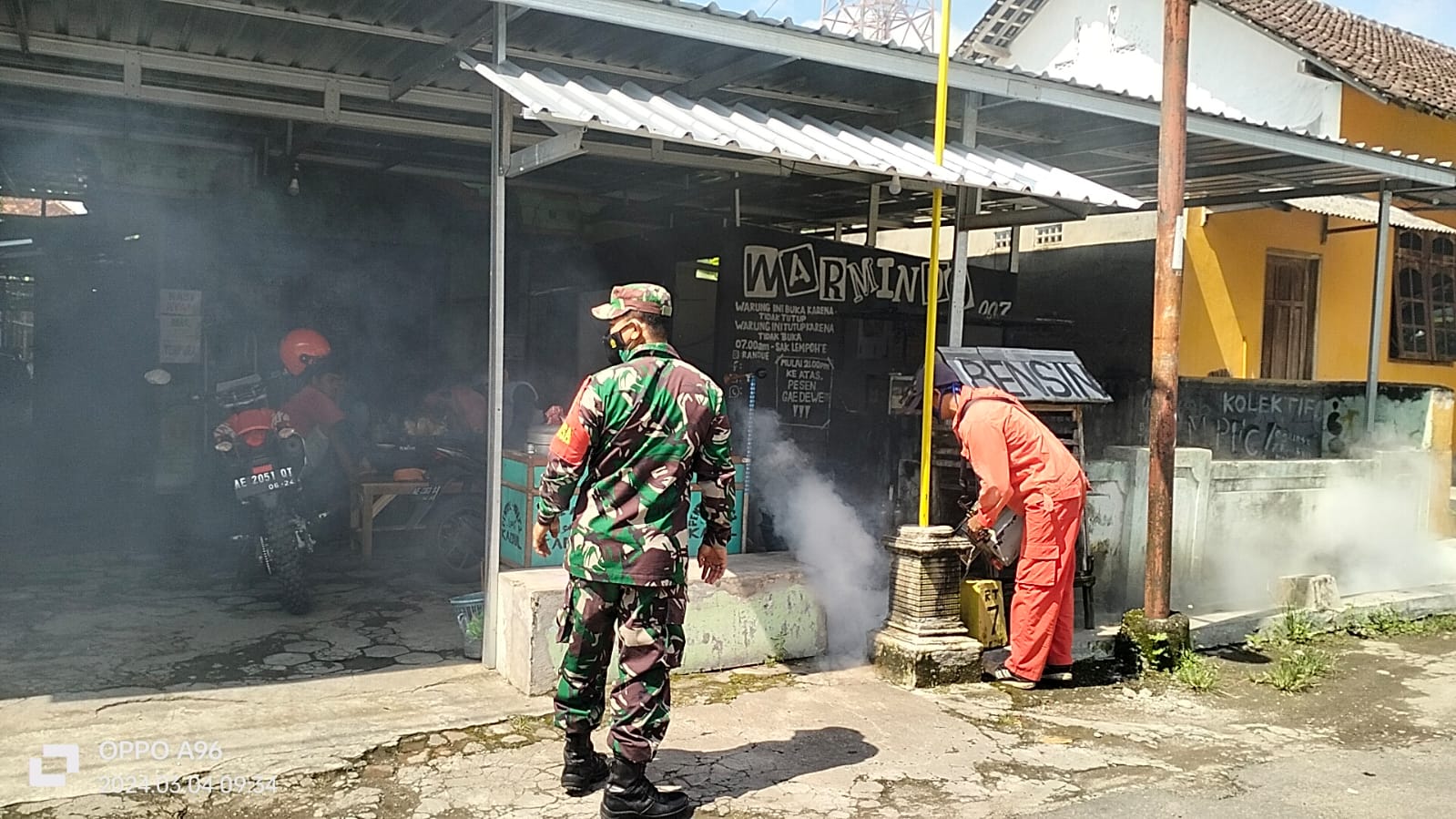 Magetan. – Babinsa Koramil tipe B 0804/06 Maospati Serma Amadi, jajaran Kodim 0804/Magetan melaksanakan pendampingan kegiatan Fogging dari Dinas Kesehatan, Kabupaten Magetan, dan Puskesmas Ngujung, di Desa Suratmajan, Kab Magetan. Senin (4/3/2024)
