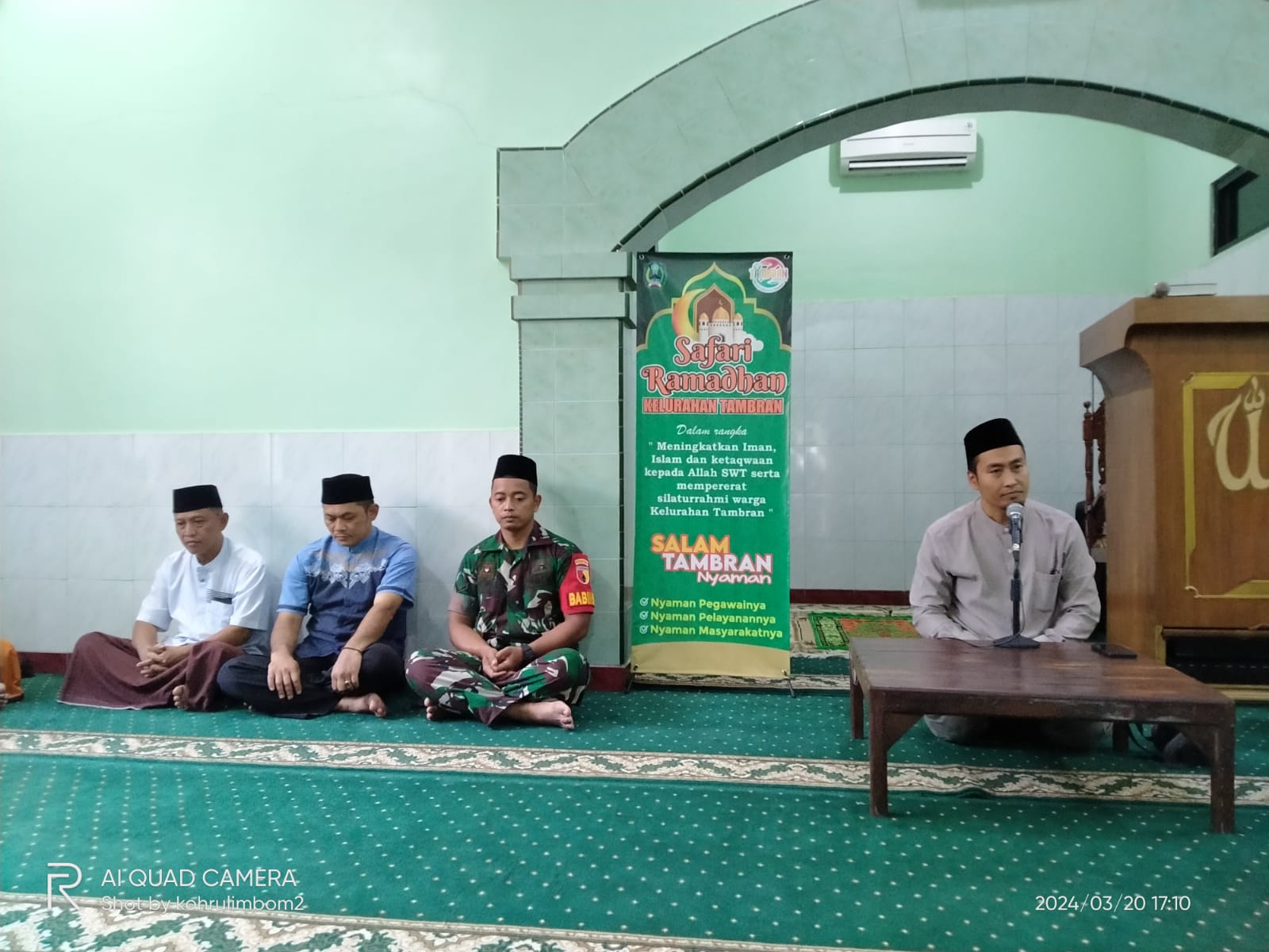 Kegiatan Safari Ramadhan bertempat di Masjid AL-BAROKAH tersebut dihadiri oleh Kakel Tambran Bpk Didik Setiawan,SE, Bhabinkamtibmas Kel. Tambran Aipda Rossi, Babinsa Kelurahan Tambran Serda Gus Anwar, Perangkat kelurahan Tambran, Penceramah Ustad Anwar Sanusi, Takmir dan jamaah Masjid AL-Barokah, Warga sekitar masjid AL-Barokah.