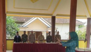 Magetan. Danposramil Ngariboyo, Koramil Tipe B 0804/01 Magetan jajaran Kodim 0804/Magetan Peltu Hadi Kusnomo bersama Forkopimca Ngariboyo menghadiri pelaksanaan kegiatan Pelantikan Perangkat Desa Kaur Keuangan di Pendopo Desa Baleasri Kecamatan Ngariboyo Kabupaten Magetan. Rabu(24-4-2024)