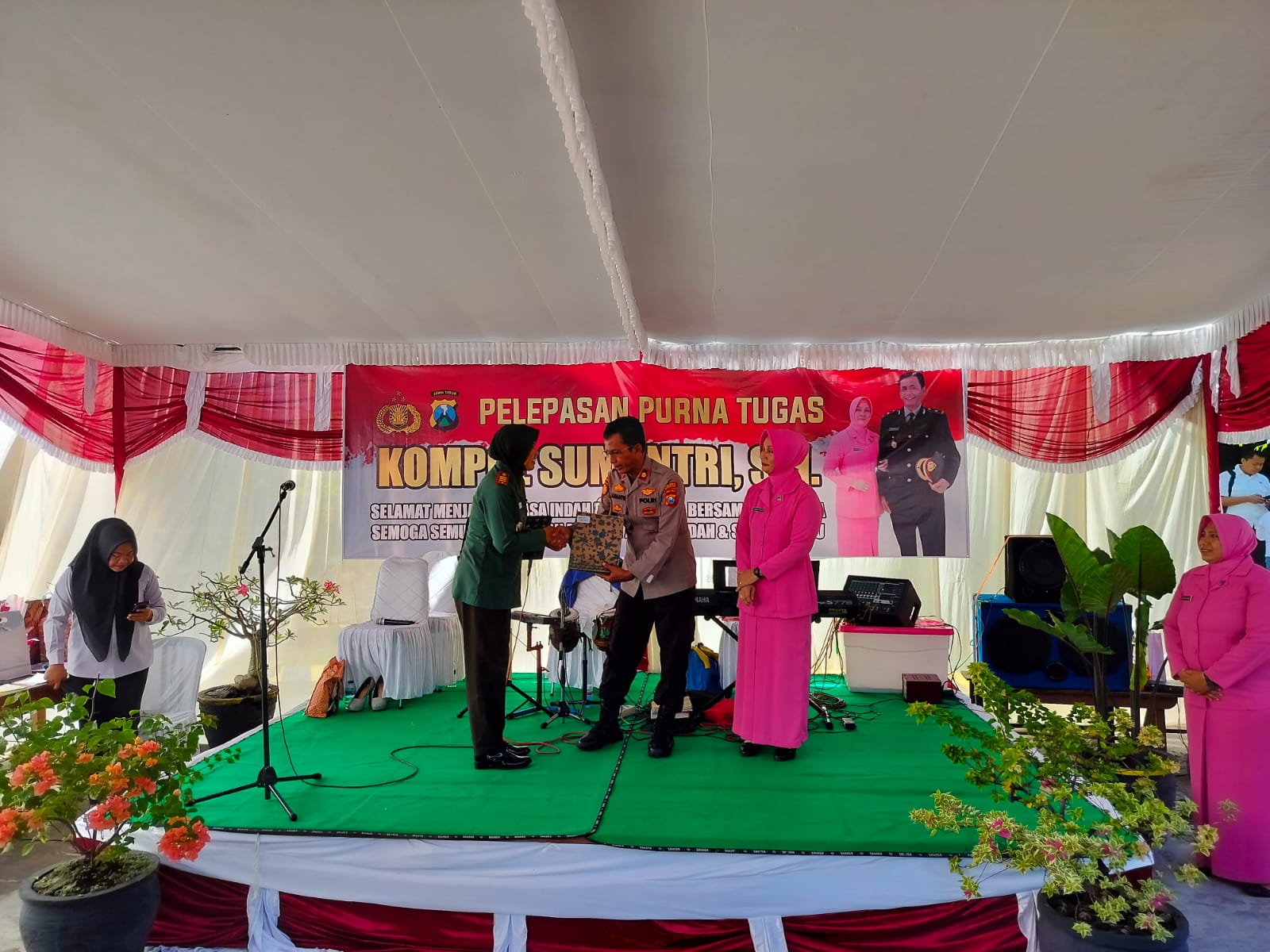 Magetan. – Danramil 06/Maospati jajaran Kodim 0804/Magetan Kapten CBA ( K ) Dyah Nilasari S.Sos Bersama Anggota Koramil menghadiri Acara Perpisahan Purna Tugas Kapolsek Maospati Kompol (Purn) Sumantri SH di Halaman Mapolsek Maospati Desa Pandeyan Kec Maospati Kab Magetan. Sabtu (27/4/2024)