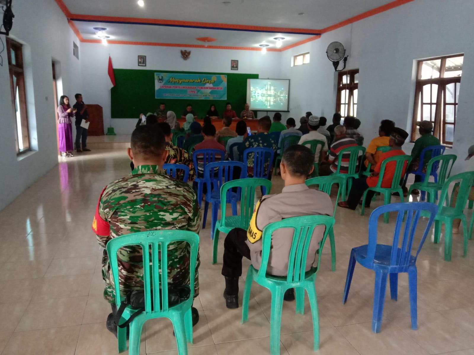 Magetan. – Danposramil Ngariboyo Koramil Tipe B 0804/01 Magetan jajaran Kodim Magetan Peltu Hadi Kusnomo menghadiri pelaksanaan kegiatan Musyawarah desa Laporan penyelenggaraan pemerintah desa (LPPD) tahun 2023 Dan Laporan keterangan penyelenggaraan pemerintah Desa tahun 2023 Desa Banjarejo bertempat di balai Desa Banjarejo Kecamatan Ngariboyo kabupaten Magetan. Senin (01-04-2024)