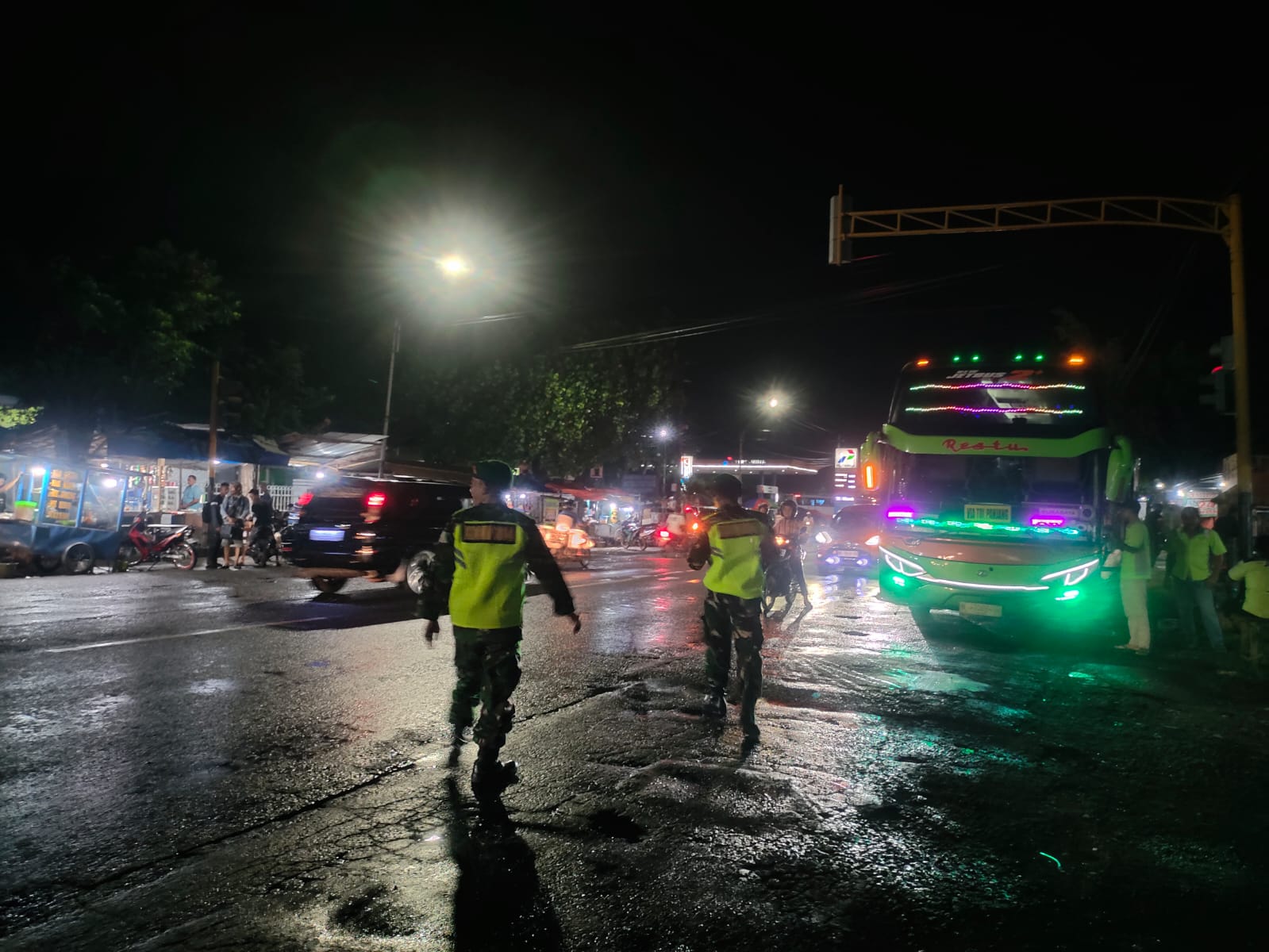 Magetan. Selama libur lebaran anggota Koramil 0804/06 Maospati bersama Polsek Maospati dan instansi terkait terus lakukan pengamanan dan pemantauan arus mudik maupun arus balik lebaran di Pos Pengamanan Terminal Maospati demi memberikan kenyamanan dan keamanan dalam perjalanan para Pemudik di wilayah Kabupaten Magetan, Jum’malam (13/4/2024).