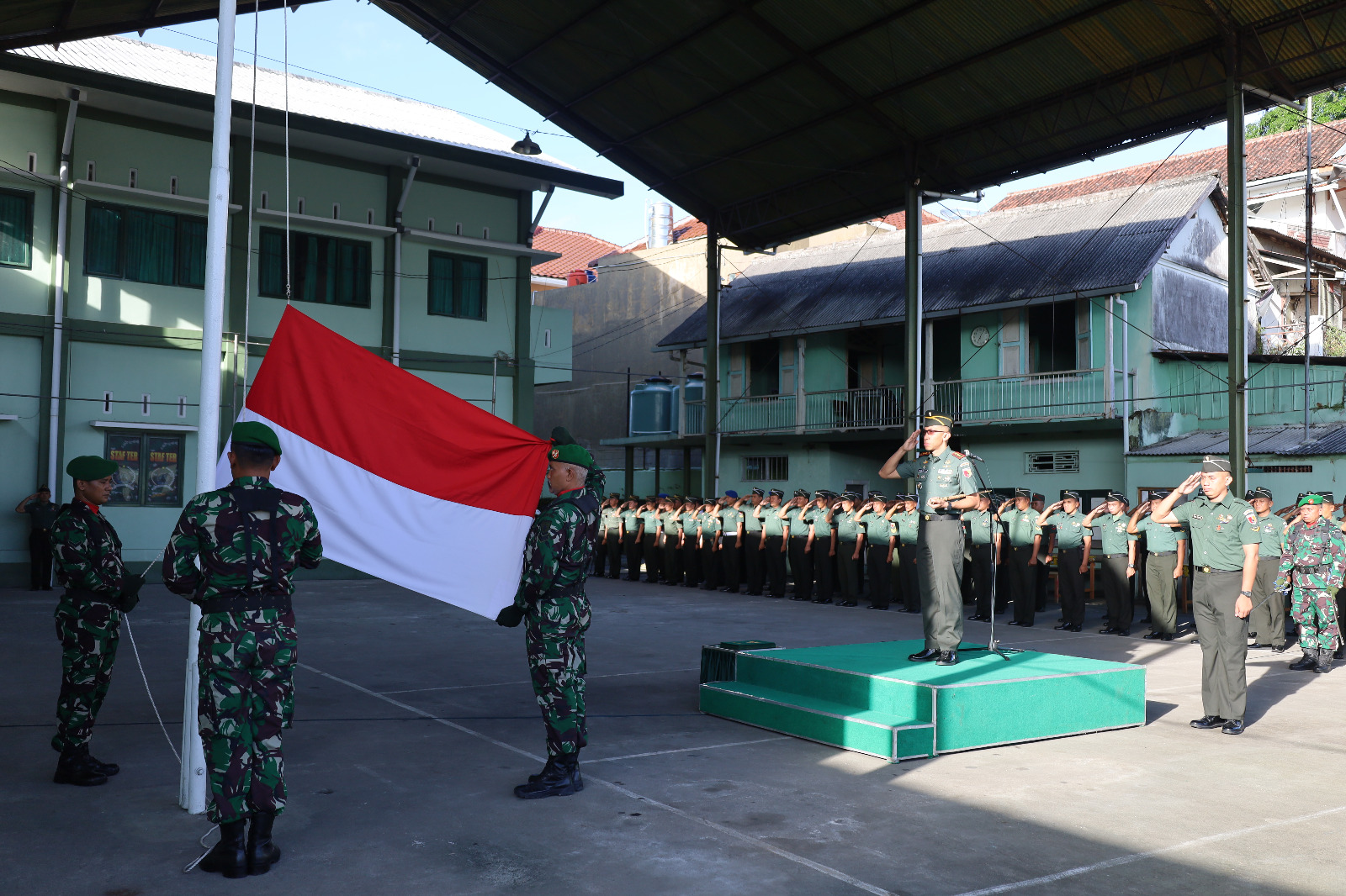 Magetan. Dandim 0804/Magetan Letkol Inf Hasan Dasuki, S.Sos., meminpin langsung upacara bendera 17 April 2024 dilapangan apel Makodim 0804/Magetan. Upacara bendera berjalan dengan hikmat dan diikuti oleh prajurit dan PNS Kodim 0804/Magetan, anggota Minvet Magetan dan Sub Denpom Magetan. Rabu (17/4/2024)