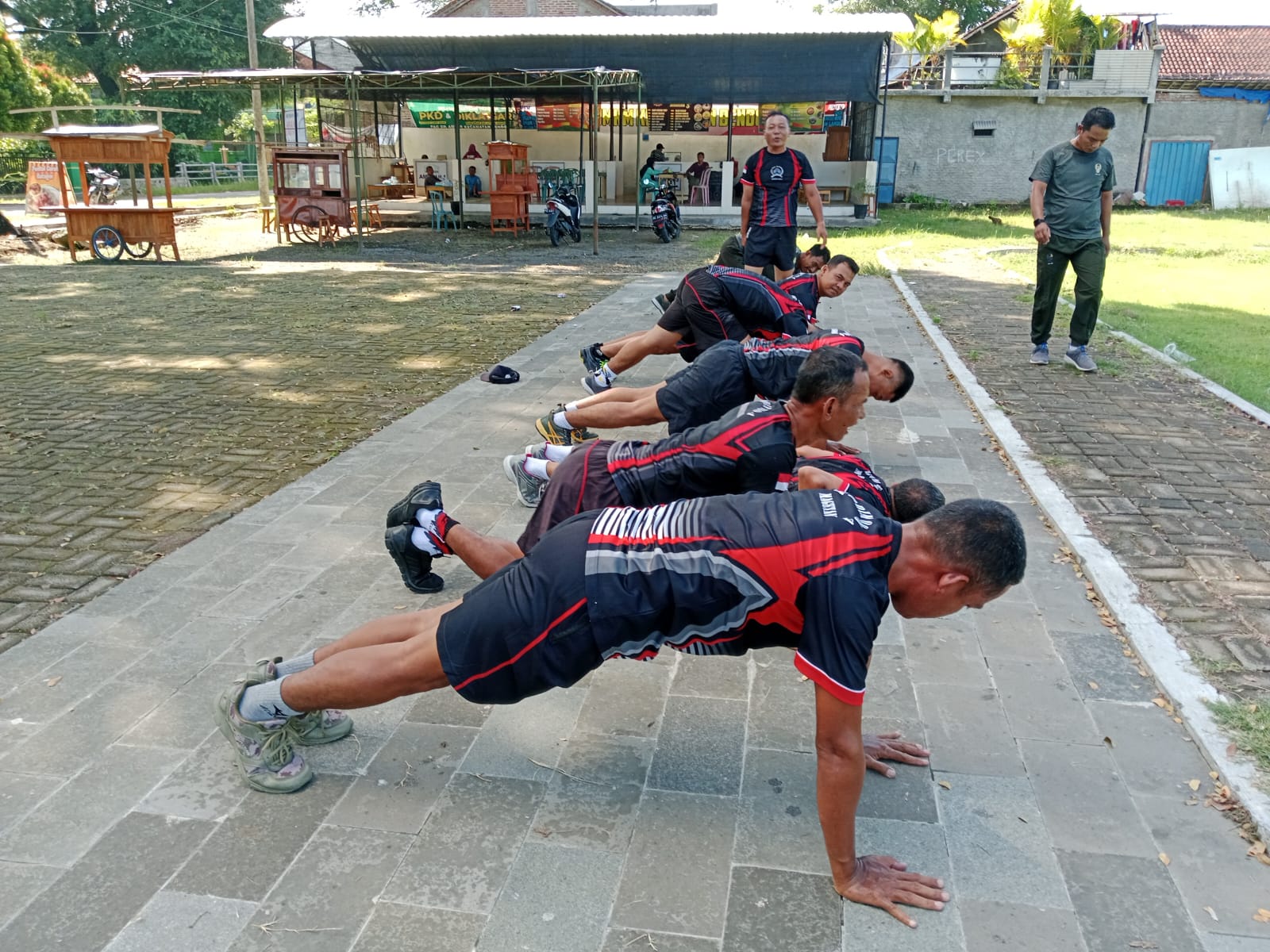Hari ini Kita akan melaksanakan olahraga bersama, kegiatan olahraga bersama ini diawali dengan apel pagi dilanjutkan dengan perenggangan dan giat lari, Sit Up dan Push Up serta Pull Up.