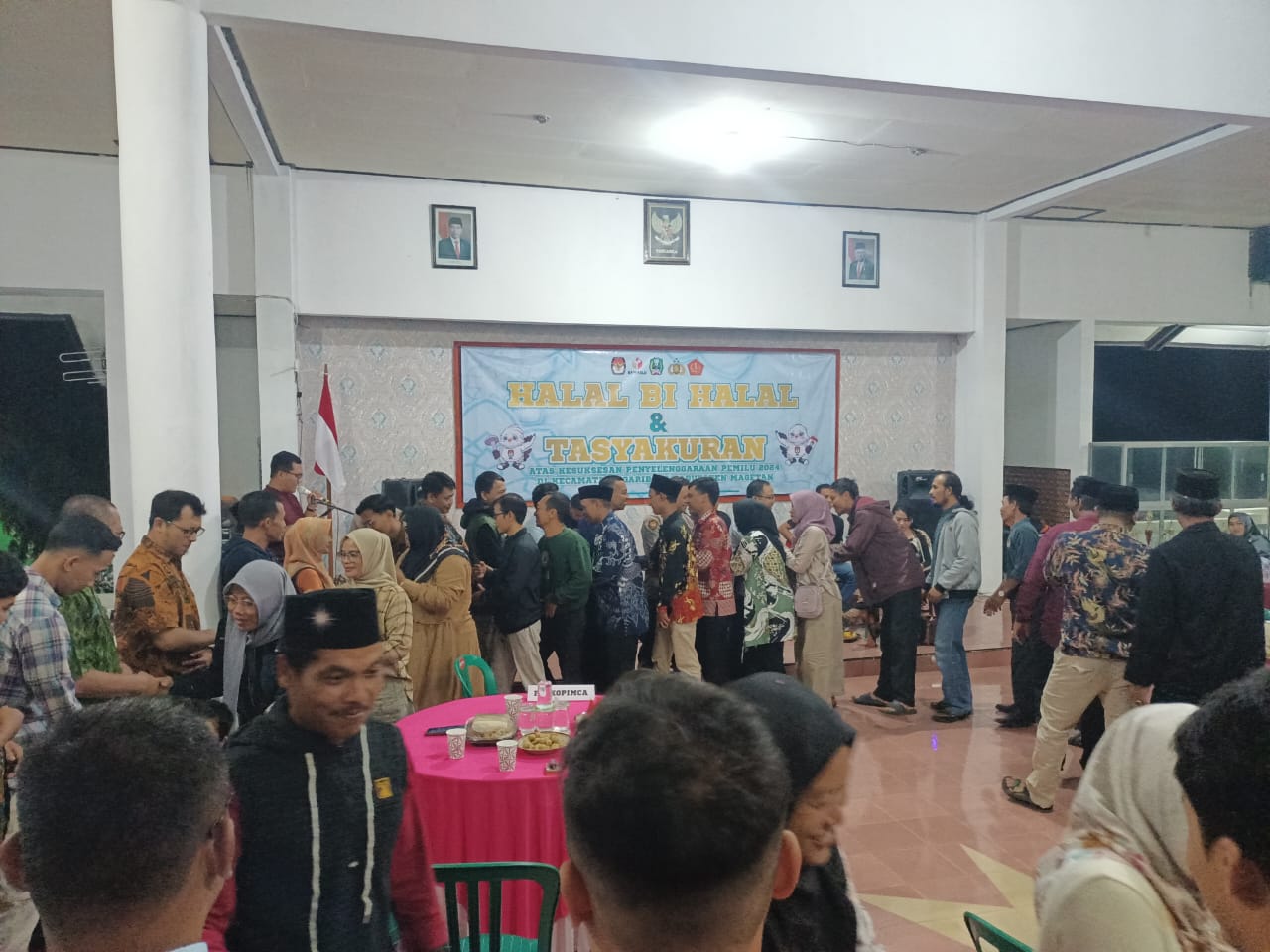 Magetan. – Danposramil Ngariboyo Koramil Tipe 0804/01 Magetan jajaran Kodim 0804/Magetan Peltu Hadi Kusnomo menghadiri pelaksanaan acara Tasyukuran Pelaksanaan Pemilu Berjalan Lancar, Aman dan Terkendali dilanjutkan Halal Bi Halal bertempat di Pendopo Kecamatan Ngariboyo Kabupaten Magetan, senin (6/5/2024).