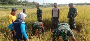Magetan. – Bersinergi Dengan Badan Penyuluh Pertanian (BPP) dan Petugas Penyuluh Pertanian (PPL) Bati Wanwil Koramil Tipe B 0804/10 Kawedanan jajaran Kodim 0804/Magetan beserta Babinsa melaksanakan pengubinan padi di area persawahan milik Bpk Sarmun Desa Karangrejo, Rt 03, Rw 05, Kecamatan Kawedanan, Kabupaten Magetan. Jumat(07/06/2024).