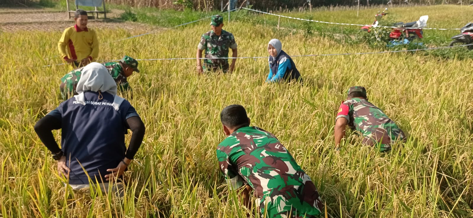 “Pada hari ini bersama-sama dengan BPP dan PPL kita lakukan pengubinan dilahan milik salah satu anggota Poktan Sumber Rejeki yaitu Sarmun. Kita lakukan pengambilan Sempel ubinan ini untuk mengetahui perkiraan hasil produksi “, ujar Bati Wanwil.
