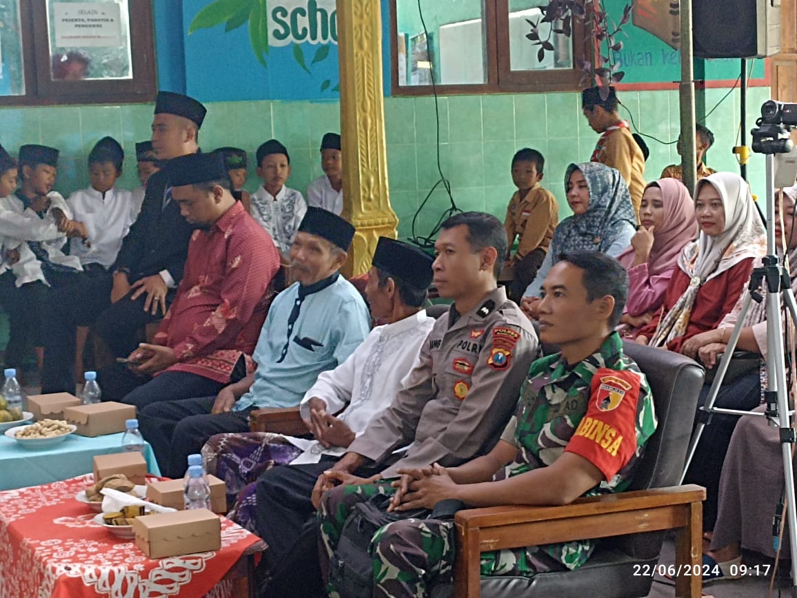 Magetan. – Babinsa Koramil 0804/13 Bendo jajaran Kodim 0804/Magetan Serka Jayadi menghadiri undangan Haflah Akhirussanah MI dan RA AL Mubarrokah dan pelepasan peserta didik kelas VI Angkatan Ke-VI Tahun Pelajaran 2023/2024 Madrasah Ibtidaiyah (MI) Setren di Desa Setren Kecamatan Bendo, Kabupaten Magetan. Minggu (23/06/2024)