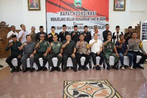 Rapat Koordinasi Pencegahan dan Kewaspadaan Konflik Jelang Muharram 1445 H/2024 merupakan langkah penting dalam menjamin perayaan Muharram di Kabupaten Magetan berlangsung damai dan aman. Pertemuan tersebut mempertemukan para pemangku kepentingan utama dari militer, polisi, pemerintah, dan komunitas pencak silat untuk membahas dan mengordinasikan upaya mereka untuk mencegah konflik dan menjaga keamanan. Pertemuan tersebut juga menjadi pengingat akan pentingnya saling menghormati dan toleransi pada hari raya keagamaan yang penting ini. (MC0804)