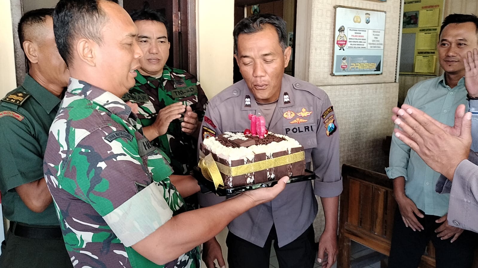 Kedatangan tentara beramai-ramai mendatangi kantor polisi, kedatangan para serdadu ini untuk memberikan ucapan selamat ulang tahun kepada rekan-rekannya anggota Polsek yang sedang merayakan hari jadinya, yaitu Hari Bhayangkara yang Ke- 78 Tahun, Pada 1 Juli 2024.