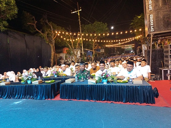 Magetan. Danposramil Ngariboyo Koramil 0804/01 Magetan Peltu Hadi Kusnomo mewakili Komandan Kodim 0804/Magetan bersama anggota Koramil 0804/01 Magetan hadiri giat masyarakat pengajian umum Gus Iqdam dalam rangka Tasyakuran pernikahan Haji Dita Budi Santoso di kelurahan Tawanganom kecamatan Magetan kabupaten Magetan. Minggu Malam (07/07/2024)