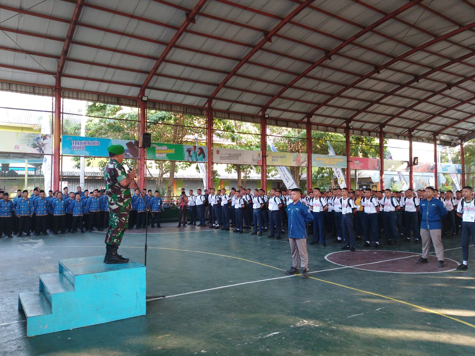 Magetan, Dalam rangka Masa Pengenalan Lingkungan Sekolah, Danramil 13 /Bendo Kodim 0804/Magetan Kapten Inf Arif Wibowo di dampingi Babinsa mengisi materi Wawasan Kebangsaan dan Bela Negara di SMK Negeri 1 Bendo, Rabu ( 17/07/2024 )