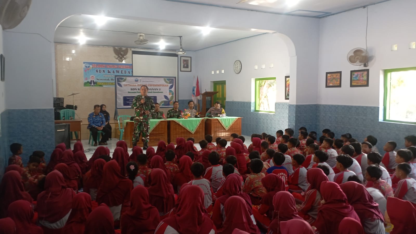 Magetan. Batituud Koramil 0804/10 Kawedanan dan Babinsa aktif dalam mendukung kegiatan Masa Pengenalan Lingkungan Sekolah (MPLS) dengan memberikan materi wawasan kebangsaan dan pelatihan peraturan baris berbaris (PBB).
