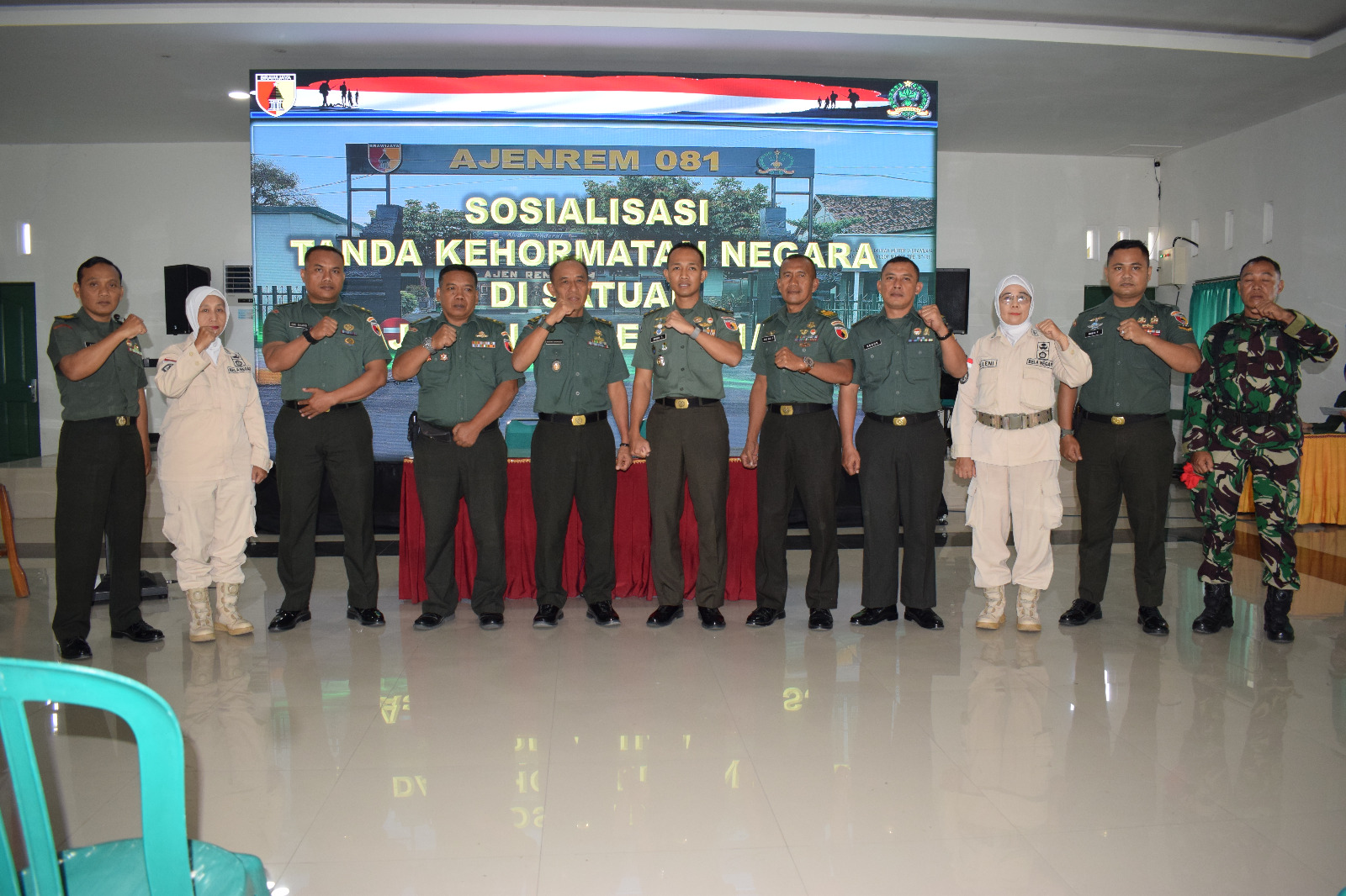 Kepala Ajenrem 081/Dsj Mayor Caj Erwin Setyono, S.H., dalam sambutanya menyampaikan, tanda kehormatan merupakan bentuk apresiasi negara. Bukan hanya sekadar penghargaan, tetapi juga merupakan bentuk apresiasi negara atas jasa dan pengabdian seorang prajurit.