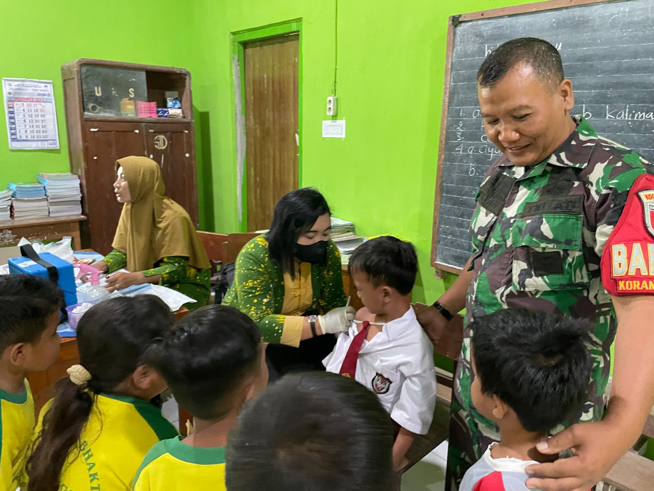 Kegiatan pendampingan ini merupakan bagian tugas kewilayahan yang harus dilakukan Babinsa. Kehadiran Babinsa dalam pelaksanaan imunisasi membawa pengaruh terhadap moril para anak-anak agar tidak merasa takut terhadap suntikan imunisasi untuk menimbulkan rasa percaya diri, demi kesehatan mereka. Tutup Sertu Aman (R 06)