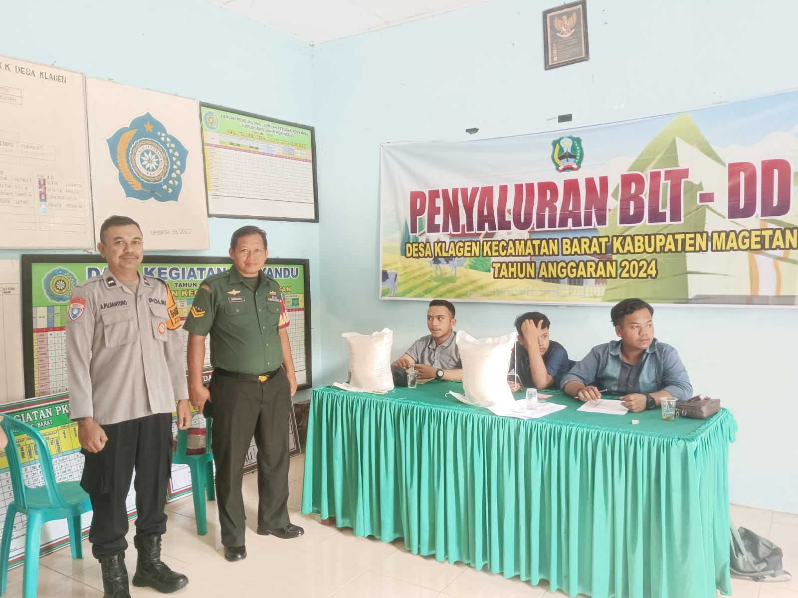 Dalam kegiatan tersebut Babinsa Koramil 0804/08 Barat jajaran Kodim 0804/Magetan Sertu Daryanto mendampingi secara langsung pembagian beras bertempat di halaman Kantor desa klagen Kec. Barat Kab. Magetan, senin (12/08/24).