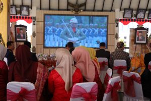 Setelah upacara, Jajaran Forkopimda Magetan beserta tamu undangan menyaksikan jalannya upacara detik detik proklamasi ke-79 Kemerdekaan RI dari IKN melalui zoom meeting di Pendopo Surya Graha. (MC0804