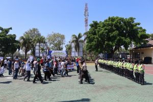 Magetan. – Jelang Pemilihan Kepala Daerah (Pilkada) 2024, Dandim 0804/Magetan Letkol Inf Hasan Dasuki, S.Sos. menghadiri Apel Gelar Pasukan dan Simulasi Sispamkota di halaman Mapolres Magetan. Senin (19/8/2024)