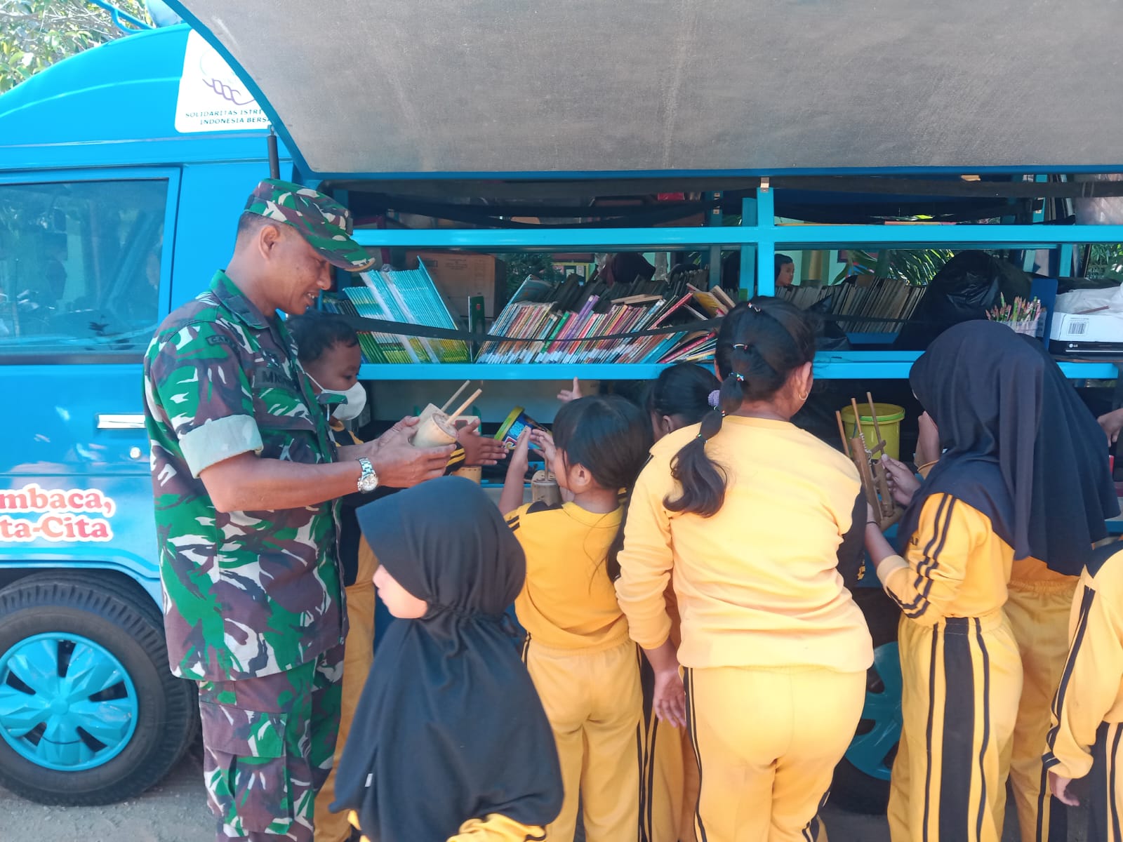 Selaku pengelola Rumah Pintar Merak Jaya Korem 081/Dsj, Pelda Mashuriah bersama pengelola Rumah Pintar Juanda Cendekia melaksanakan safari mobil pintar di Dinas Pendidikan Kab. Pacitan dan Galeri SBY-Ani di Kota Pacitan. Senin (19/8/2024)