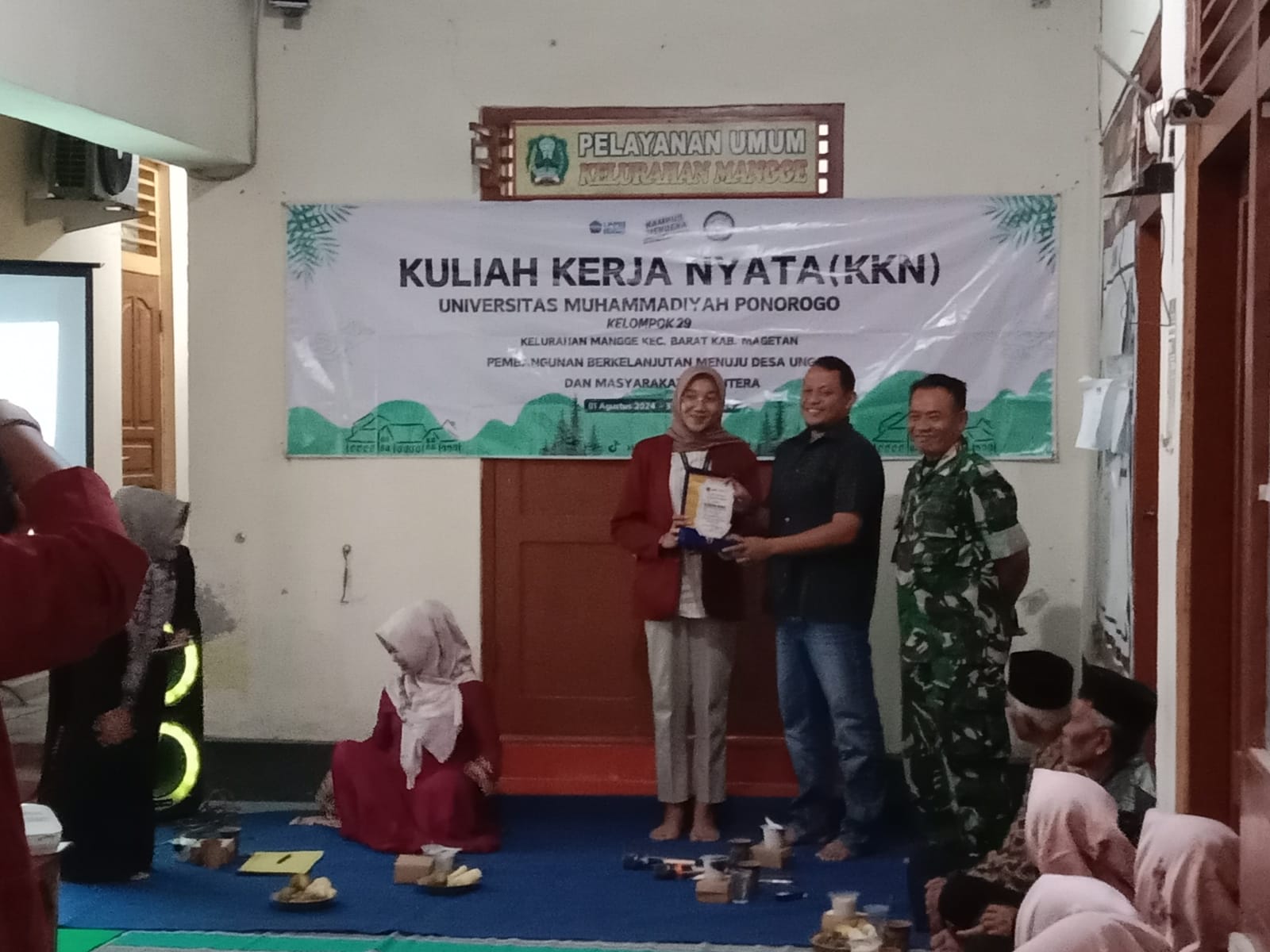 Kegiatan penutupan kuliah kerja nyata universitas Muhammadiyah Ponorogo di Kelurahan Mangge Kecamatan Barat tersebut dihadiri oleh kepala kelurahan Mangge Bayu Prasetyo, S.STp.MSi, perangkat Kel. Mangge, Babinsa dan Bhabinkamtibmas, Ibu pkk, Ketua RT dan RW dan mahasiswa/mahasiswi peserta KKN sejumlah 16 orang.