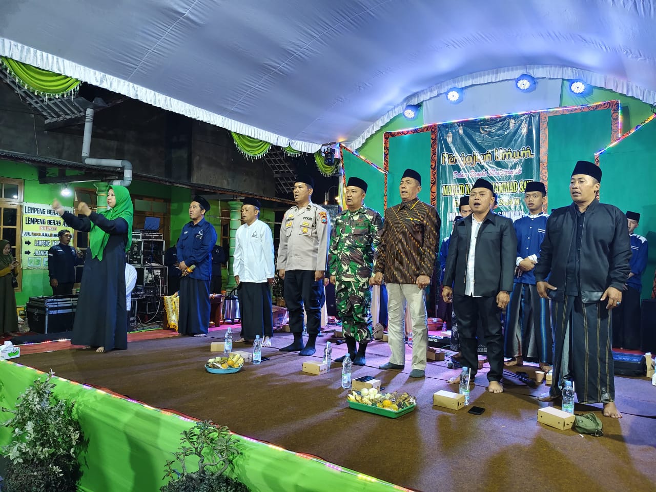 MAGETAN. – Bati Tuud Koramil Tipe B 0804/01 Magetan jajaran Kodim 0804/Magetan Pelda Andyk Ramadana bersama Forkopimca Magetan menghadiri kegiatan Penagajian Umum dalam rangka Peringatan Maulid Nabi Muhammad SAW Tahun 1446 H / 2024 M. Bersama Kyai Haji Nafi’an Al-Maliki dari Karanganyar yang di hadiri sekitar 200 orang bertempat di Jln. Yudistira RT 03 RW 01, Kelurahan Sukowinangun kecamatan Magetan kabupaten Magetan. Sabtu (14-9-2024)
