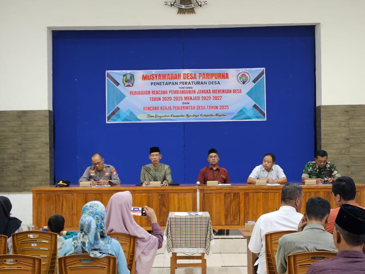 Kegiatan musyawarah desa (MusDes) Paripurna penetapan peraturan desa tentang perubahan RPJMDes Tahun Anggaran 2025 dan Rencana kerja pemerintah Desa Th 2025 Desa Banyudono tersebut dihadiri oleh Camat ngariboyo Bpk Agung Budiarto, Danposramil ngariboyo Peltu Hadi Kusnomo, Kapolsek ngariboyo AKP Agus Sumaryono SH, Ketua BPD Bp Aminadi, Kepala Desa Banyudono Bp Drs. H Supriyono, Babinsa Desa Banyudono Serka Harun, Bhabinkamtibmas Desa Banyudono Ipda Arif, Wakil ketua BPD, Perangkat Desa Banyudono, Tokoh agama Masyarakat Desa Banyudono, Ketua RT/RW dan karangtaruna desa Banyudono.