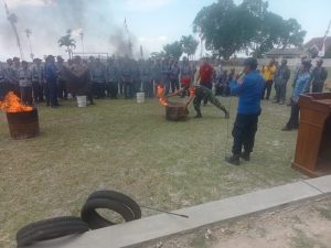 Selain sosialisasi mengenai perlindungan dan ketertiban, peserta juga mendapakatkan ilmu pelatihan dasar PBB. Pungkas Sertu Sugito (R 02)