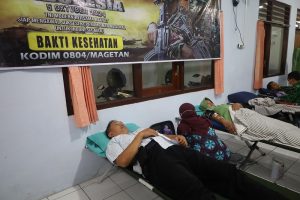 Donor darah yang dilakukan di Kantor UPT PMI Magetan kali ini berhasil menarik minat banyak pendonor. Salah satunya, Hardi menyampaikan rasa terima kasihnya kepada pihak Kodim yang selalu mengingatkan masyarakat akan pentingnya donor darah.