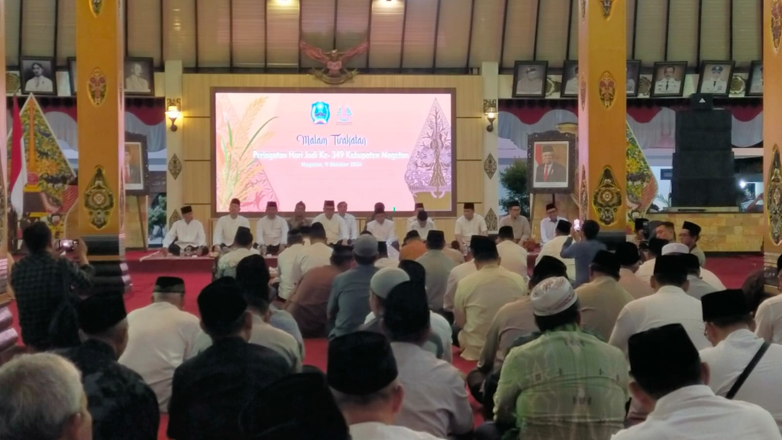 Magetan – Dalam suasana penuh khidmat, Dandim 0804/Magetan diwakili Danramil 0804/01 Magetan Kapten Arm Khoirudin dan para Danramil jajaran Kodim 0804/Magetan ikut hadir dalam malam tirakatan yang digelar di Pendopo Surya Graha Magetan. Acara ini sebagai bentuk refleksi dan wujud syukur dalam memperingati hari jadi ke-349 Kabupaten Magetan. Jum’at malam (11/10/2024)