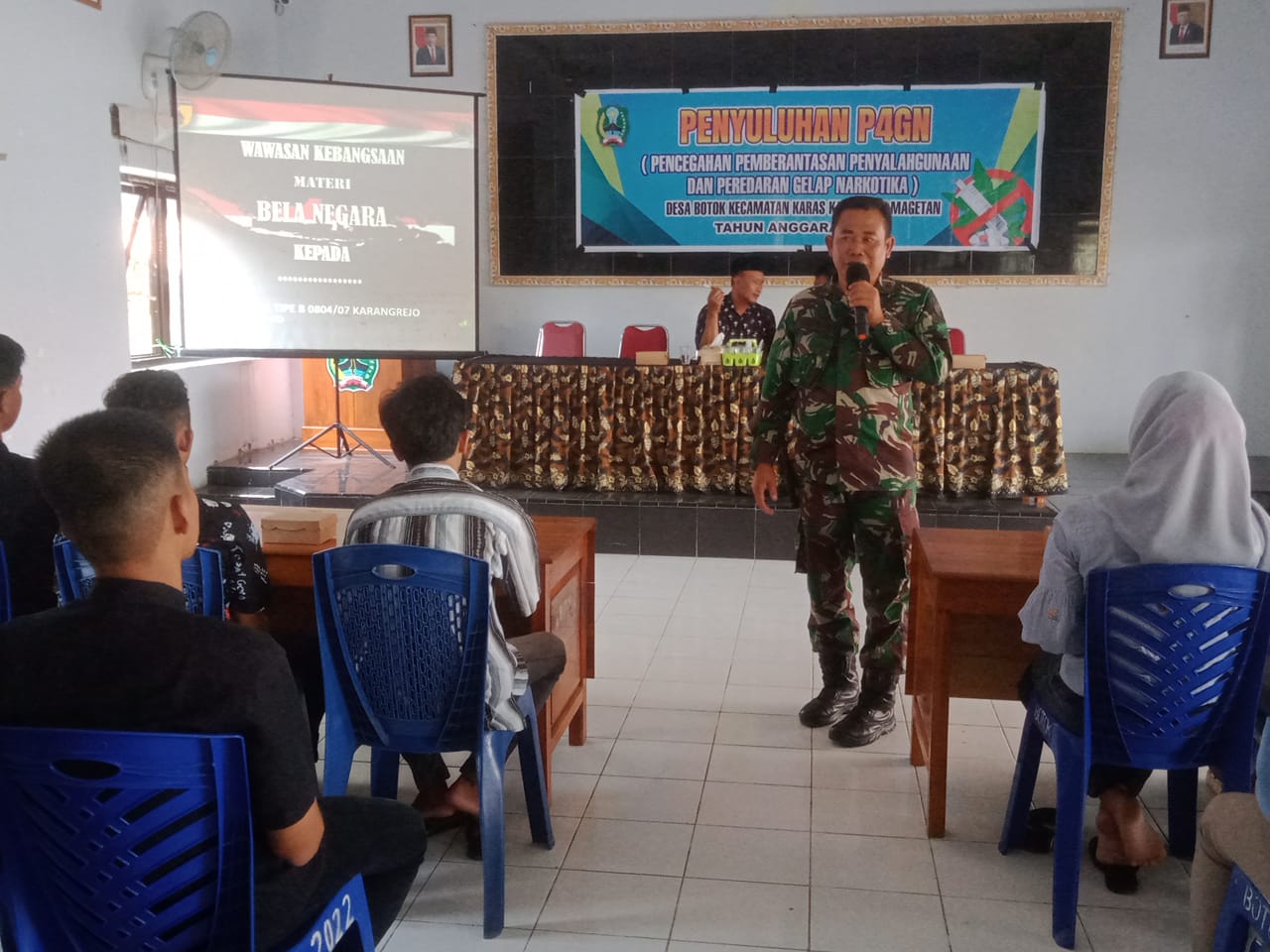 Wasbang ini dihadiri oleh Dan pos Karas Peltu Funindiyanto selaku narasumber dari Koramil Karangrejo, AKP Pardi, S.H narasumber dari Polsek Karas, Ibu Eka Tri Wahyuni narasumber dari PLKB Karas, Kades Botok, Perangkat Desa Botok, Babinsa dan Bhabinkamtibmas serta remaja warga desa Botok.