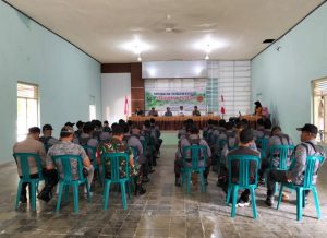 Sebelum pelaksanaan pelatihan anggota Linmas menerima pembekalan materi teori, Batituud Serma Suwandi menjelaskan bahwa pembinaan Linmas merupakan bagian dari kegiatan pembinaan perlawanan wilayah,Babinsa dan Bhabinkantimas memiliki tugas menjalin kemitraan dengan anggota Linmas sebagai mata dan telinga terhadap perkembangan di wilayah binaan, terutama dalam aspek keamanan, ketentraman dan ketertiban masyarakat, Ujarnya