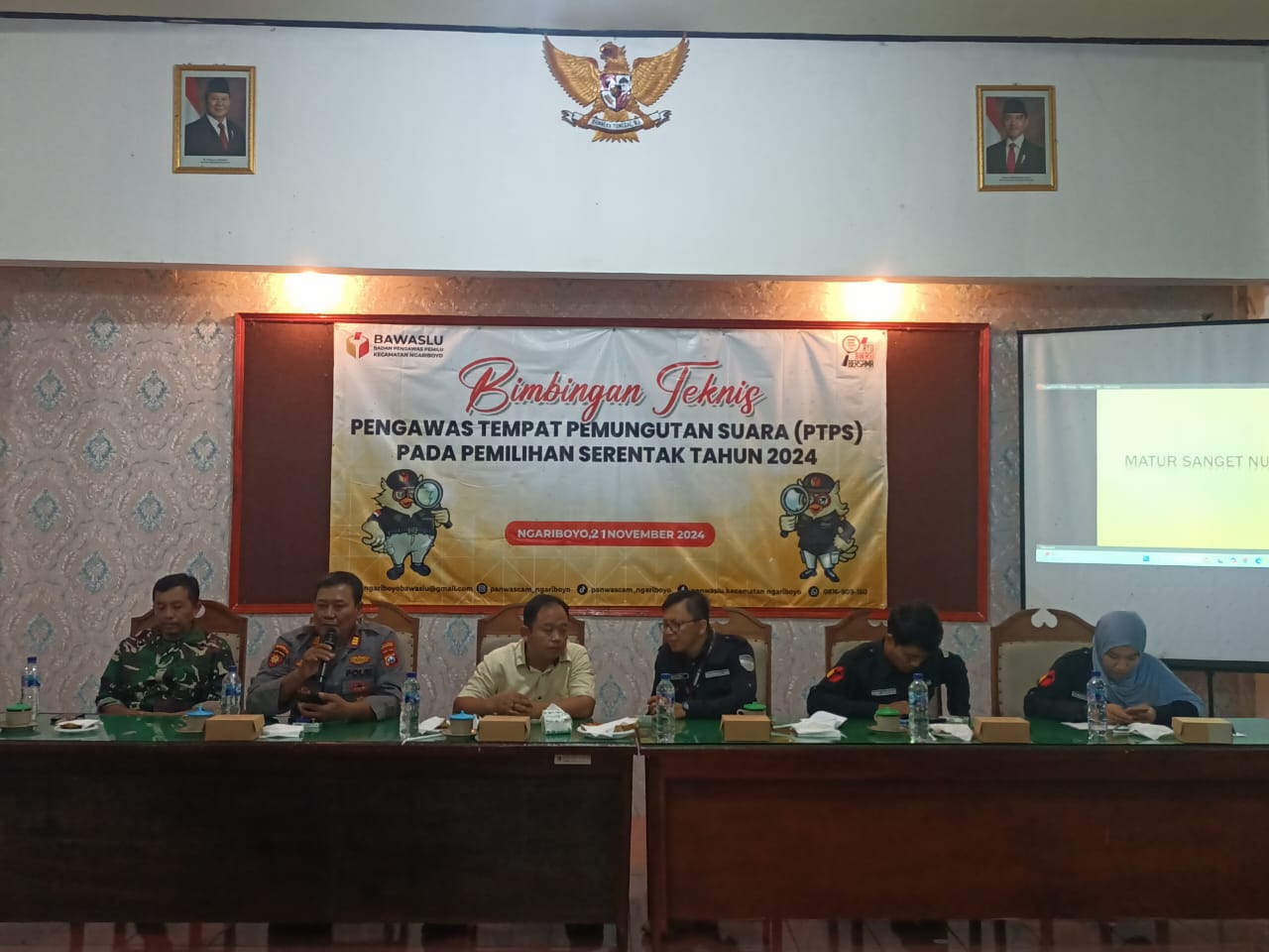 Magetan.kodim-magetan.com – Danposramil Ngariboyo Koramil Tipe B 0804/01 Magetan jajaran Kodim 0804/Magetan Peltu Hadi Kusnomo menghadiri pelaksanaan kegiatan Bimbingan Teknis Pengawas Tempat Pemungutan Suara (PTPS) di tingkat Desa Se-Kecamatan Ngariboyo pada pemilihan serentak tahun 2024 bertempat di Pendopo Kecamatan Ngariboyo Kabupaten Magetan. Jumat (22-11-2024)