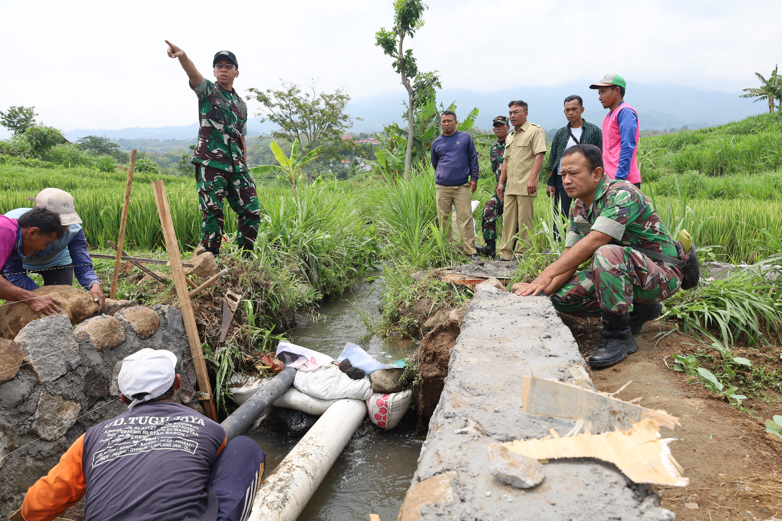 Dandim 0804/Magetan, Letkol Inf Hasan Dasuki, S.Sos., M.I.P., bersama melakukan pengecekan sejumlah titik program pipanisasi dan saluran irigasi di wilayah Kec. Panekan , Kab. Magetan. Selasa (12/11/2024)