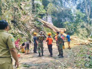 Sebelumnya, Sertu Sumarno mendapatkan laporan dari warga, yang kebetulan sedang melintas di jalan tersebut. Dengan sigap babinsa berkoordinasi dengan pihak terkait dalam mengevaluasi pohon Tumbang tersebut karena kalau dengan alat manual tidak bisa harus menggunakan alat gergaji mesin dan alat berat, di karenakan diameter Pohon yang cukup besar dan posisi pohon dilereng tebing yang tinggi. dalam evakuasi bantu oleh dari Anggota Koramil 02/Plaosan, Anggota BPBD kabupaten Magetan, Dinas PUPR kabupaten Magetan dan warga masyarakat sekitar lokasi.
