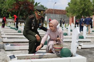 Selesai pelaksanaan upacara peringatan Hari Pahlawan, kegiatan dilanjutkan acara ziarah dan tabur bunga di pusara makam Pahlawan di TMP Yudhonegoro Magetan, diikuti Forkopimda Magetan dan seluruh undangan yang hadir pada acara tersebut. (MC0804)