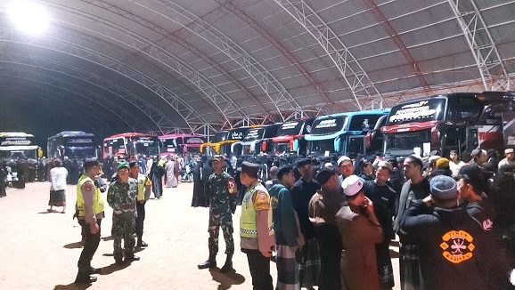 Magetan.- Personel Koramil 07/Karangrejo Kodim 0804/Magetan melaksanakan Pam di Pos Pengamanan serta membantu pemberangkatan pemulangan santri Pondok Pesantren Temboro di Desa Temboro Kecamatan Karas Kabupaten Magetan ke daerah masing-masing dengan menggunakan kendaraan Bus. (Senin, 10/03/2025 )