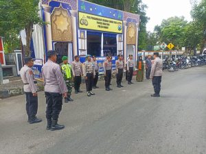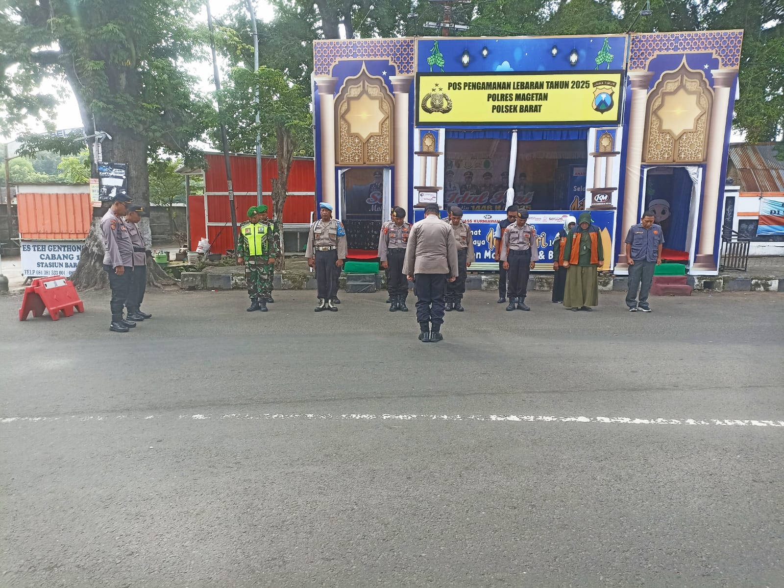 Magetan. – Anggota Koramil Tipe B 0804/08 Barat jajaran Kodim 0804/Magetan melaksanakan keamanan dan ketertiban dalam rangka menjelang perayaan Hari Raya Idul Fitri 1446 H di pos Pam depan Stasiun Kereta Api ( KA ) Jl Raya Barat, Kecamatan Barat, Kabupaten Magetan. Senin (24/3/2025)